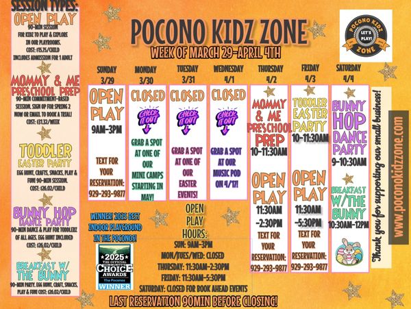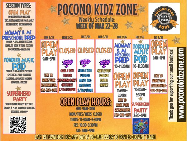 Don't see the time you want to come in on our calendar? Email me to book a private playdate! poconokidz@gmail.com