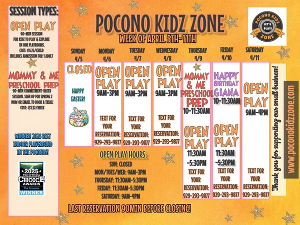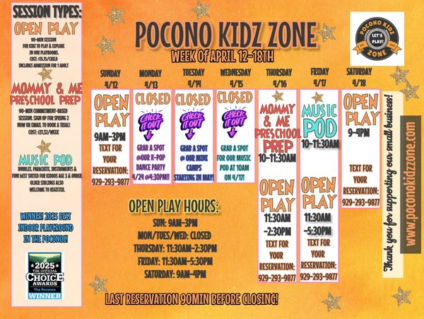 Don't see the time you want to come in on our calendar? Email me to book a private playdate! poconokidz@gmail.com